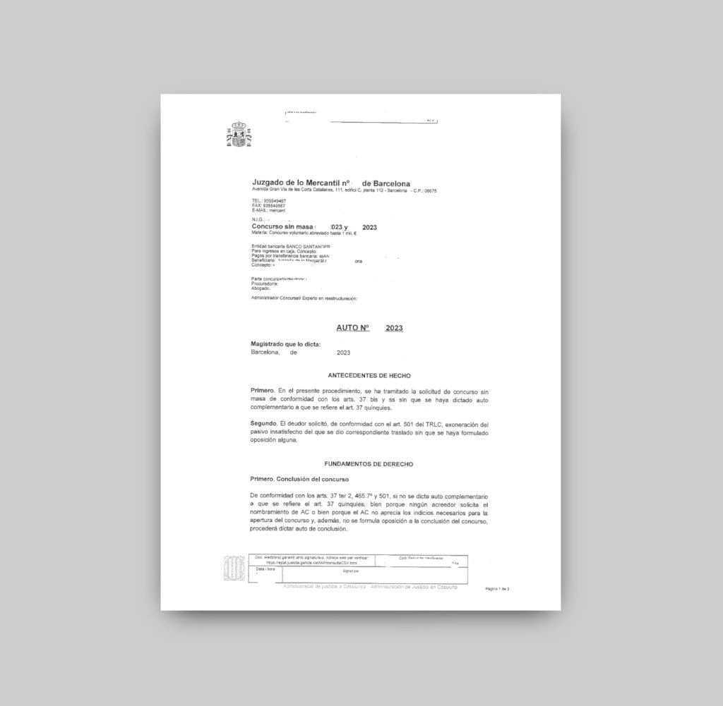 El Jutjat Mercantil de Barcelona ha exonerat a uns clients de tots els seus deutes amb el nou «concurs sense massa» tramitat en 5 mesos.